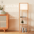 This floor lamp with shelves is designed with a built-in 3-tier display shelf so you can illuminate your room while displaying family photos or other collectibles. With dimensions of 18.9" x 11.9" x 62.75",each shelf on this standing lamp can hold up to 40lbs giving you the freedom to display anything you desire.
